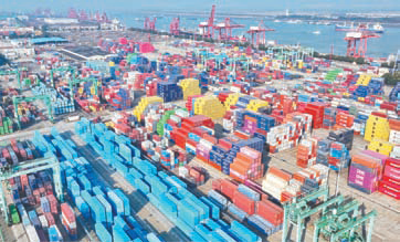 12月19日,苏州港张家港港区集装箱码头,货物装卸作业繁忙有序。截至目前,苏州港今年已经完成集装箱吞吐量1000万标箱。